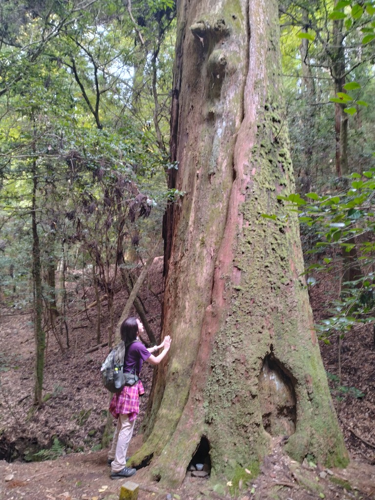夕日観音、朝日観音などな磨崖仏が彫られた道を進むと、いくつもの巨大な木々がそびえ立っているのを見ることができます