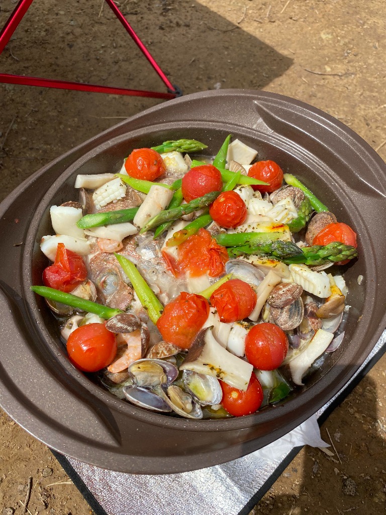 山ごはんはお花見シーズンだけの限定メニュー、海の幸と野菜たっぷりのアクアパッツァ