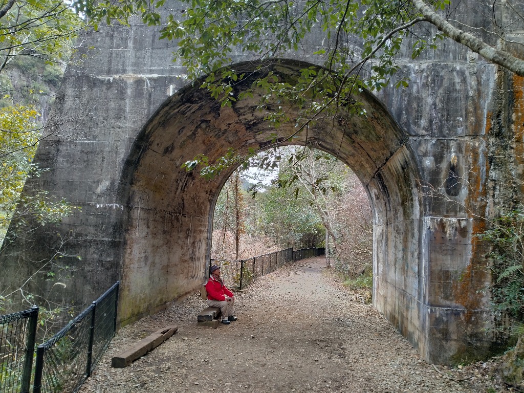 枕木、トンネル、鉄橋と、おなじみの廃線跡を歩いて、ランチポイントへ