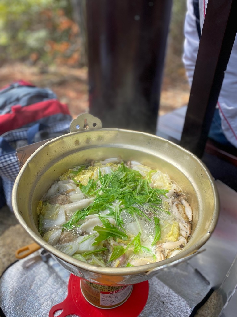 今日の山ごはんメニューは、コラーゲンたっぷりの鶏塩鍋