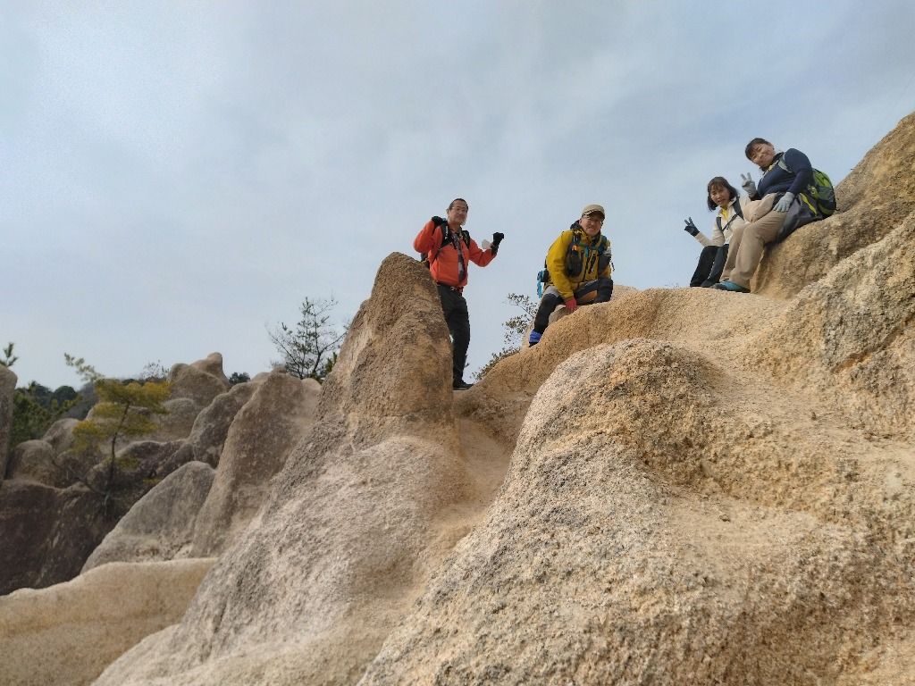 万物相からは、人気の風吹岩を経て横池で折り返し、再び風吹岩からルートを西に取り、最近人気の金鳥山に立ち寄り、南側の暖かい展望ポイントでランチタイム