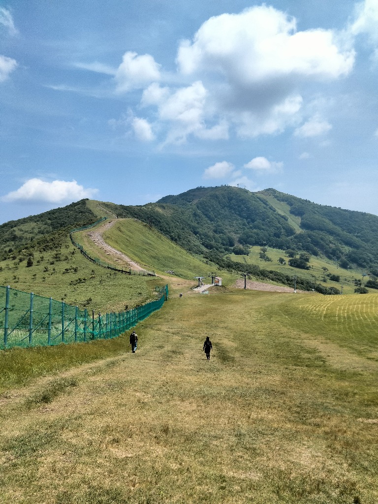 まずはスキー場の横から一本道、小代越えのコルを目指します
