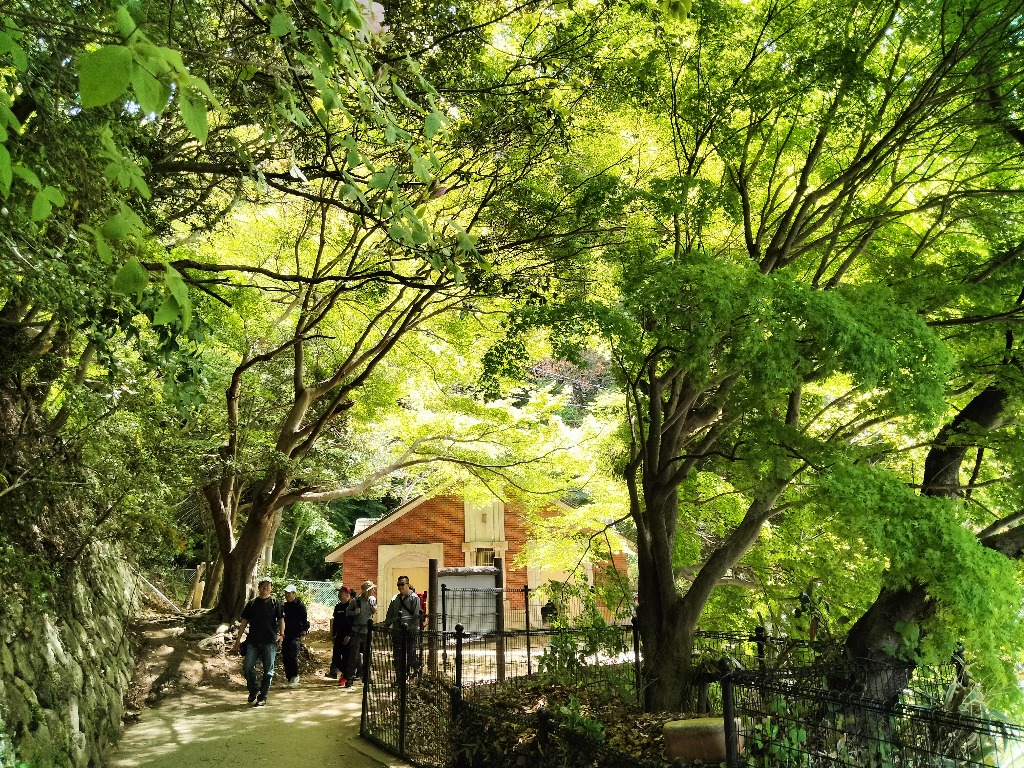 阪急芦屋川駅から芦屋川の川沿いを歩いて、住宅街を抜けると、緑豊かな山あいの道