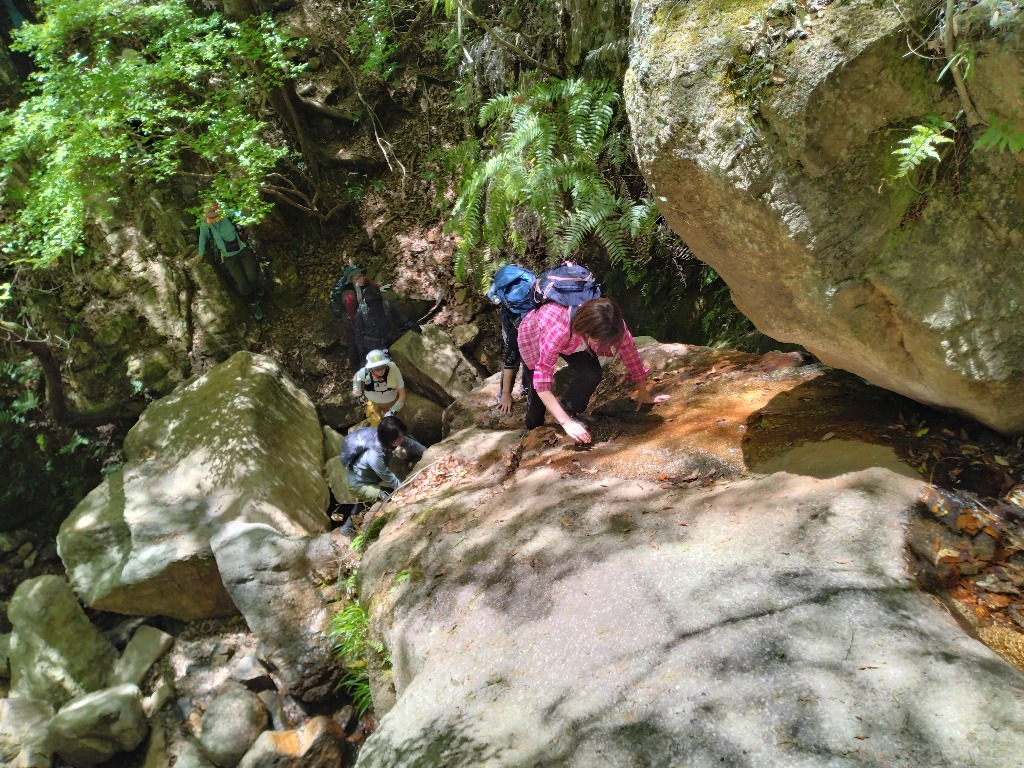沢沿いの岩場を登る、ちょっとスリリングなところもある、とっても楽しいコースです