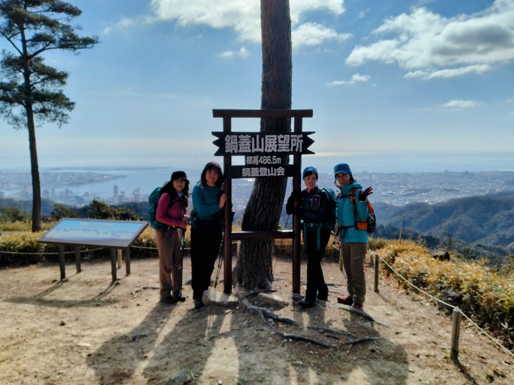 寒い季節ですが、鍋蓋山山頂は日当たりもよく、北風を遮ってくれるので、用意していた防寒着が必要ないほどのポカポカ陽気