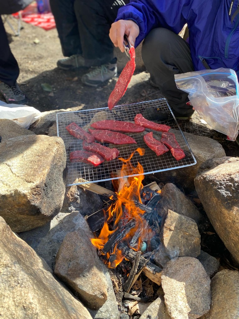 ポカポカ暖かい山頂で、アツアツの鍋料理の山ごはん!